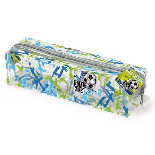 Průhledný penál, pouzdro na tužky nebo pera s potiskem GOAL TIME v designech školských linií ARGUS, vhodné i jako pouzdro na nabíječku k telefonu, sluchátka, nabíječku na smart hodinky nebo jiné drobnosti do batohu, tašky nebo aktovky.