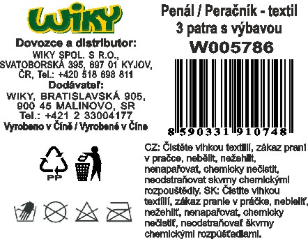 Třípatrový penál s výbavou je určen pro žáky základní školy. Každé jednotlivé patro se uzavírá na samostatný zip. Pouzdro má pružné gumové poutka pro uložení psacích potřeb.