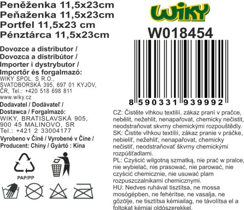 Peněženka na suchý zip 11,5x23 cm.