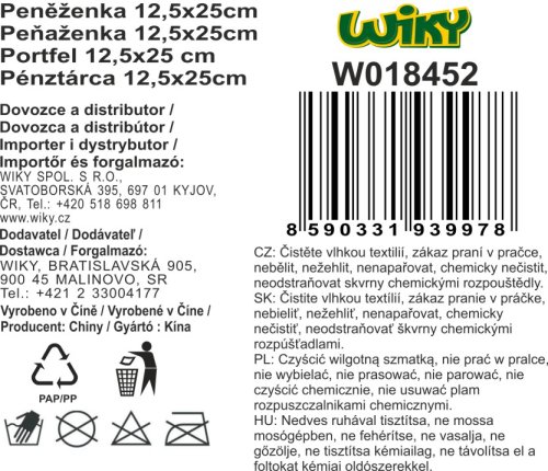 Peněženka o velikosti po otevření 12,5x25 cm. 4 různé motivy pro kluky i holky.