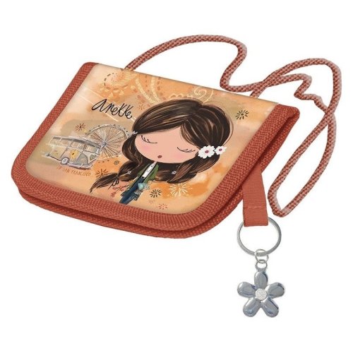 Dětská školní peněženka na krk nebo do školní tašky. <br> • má vnitřní kapsu na zip, úchyt na klíček a více přihrádek <br> • peněženka je uzavřená suchý zipem, který brání jejímu otevření <br> • dívčí motiv známého děvčátka Anekke pochází z dílny španělské návrhářky