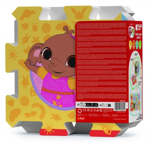 Licenční pěnové puzzle. Obsahují 8 velkých částí, jsou měkké, barevné, snadno omyvatelné a dají se z nich stavět 3D tvary, např. kocka nebo krabice. Mohou být také použity jako podložka na hraní. Pěnové puzzle rozvíjí dětskou představivost a pomáhají dětem učit se barvy a tvary. Rozměry balení 32 x 32 x 12 cm. Vhodné pro děti od 0 měsíců.