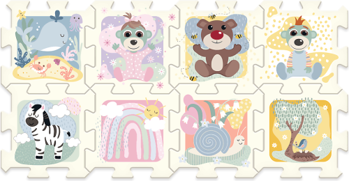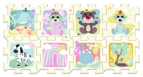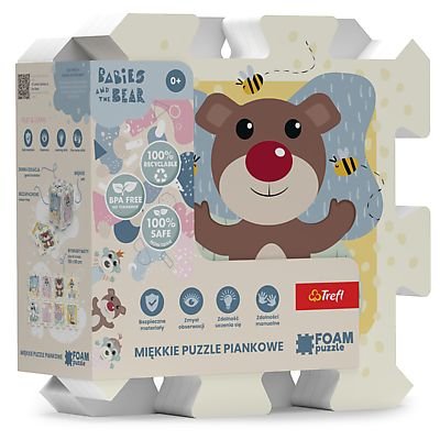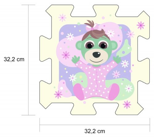 Licenční pěnové puzzle. Obsahují 8 velkých částí, jsou měkké, barevné, snadno omyvatelné a dají se z nich stavět 3D tvary, např. kostka nebo krabice. Mohou být také použity jako podložka na hraní. Pěnové puzzle rozvíjí dětskou představivost a pomáhají dětem učit se barvy a tvary. Rozměry balení 32 x 32 x 13 cm. Vhodné pro děti od 0 měsíců.