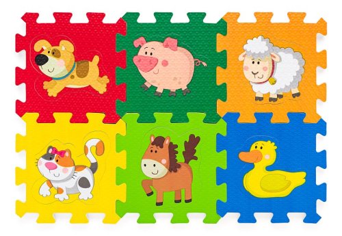 Pěnové puzzle s vyjímatelným středem seznámí děti s domácími zvířátky. Jejich úkolem je vložit zvířátka do správných otvorů. Puzzle jsou netoxické, bezpečné a omyvatelné. Tato hračka rozvíjí jemnou motoriku, logiku a koordinaci oko-ruka. Počet dílů: 12. | Věk:3+ | Rozměr dílu: 15x15 cm
