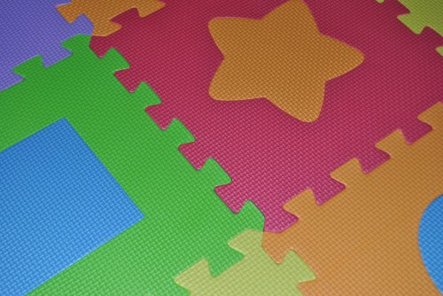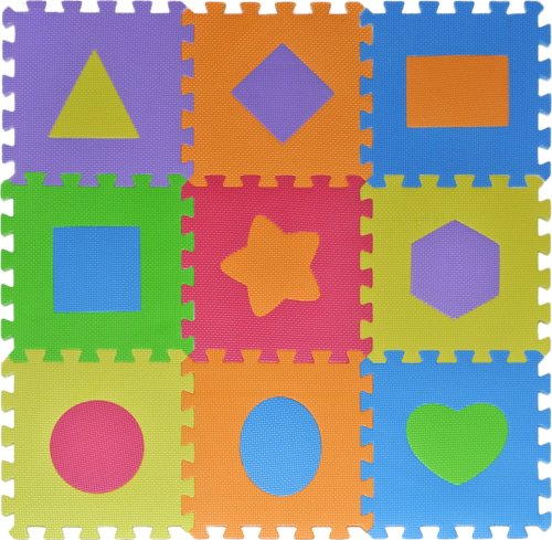 Pěnové puzzle s motivem geometrických tvarů s vyjímatelnými dílky pro děti od 3 let.