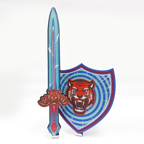 „Dětský pěnový meč a štít s motivem tygra pro malého samuraje. Souprava je vyrobena z pěny a je velmi bezpečná. Vhodné jako doplněk ke karnevalovému kostýmu.“