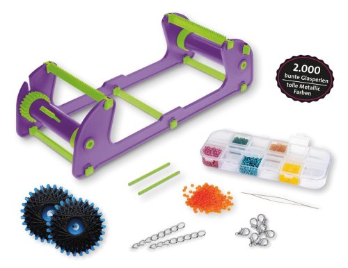 Perličková sada na výrobu cool náramků ze skleněných korálků. Obsahuje rám na tkaní z korálků, přízi, jehlu s velkým očkem, kvalitní korálky v 6 různých barvách a zapínání. Vytvoř si náramek podle tvých představ sobě nebo jako originální dárek! Rozměr balení: 28 x 24 x 5,5 cm Vhodné pro děti od 8mi let