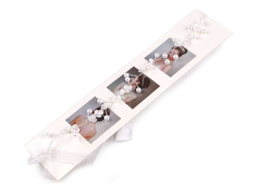 Romantická ozdoba s perlovými květy a korálky bude jemným a elegantním doplňkem vašich vlasů. Je tvořená ze zapletených drátků, díky tomu je lehce ohybatelná a lze ji prostorově tvarovat. Čelenku využijete jako nevšední doplněk na svatby, plesy, svaté přijímání a jiné slavnostní události. Střední, ozdobená část, je zakončená monofilovými stuhami na zavázání. Čelenka je vhodná do rozpuštěných vlasů i složitých účesů jako jsou různé drdoly nebo překládané účesy, kde se zavázané konce schovají pod vlasy. Očka na koncích čelenky můžete využít i k provlečení vlasových sponek - pinetek. Očka mají průměr cca 8 mm. Sponky nejsou součástí čelenky.