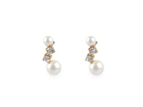 Náušnice z nerezové oceli jsou ozdobené broušenými kamínky a perlami. Jejich velikost je decentní, ale působí luxusním dojmem. Díky puzetovému zapínání je nasazování a nošení velmi pohodlné, takže je můžete mít na uších celý den.