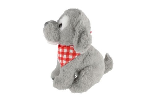 Roztomilý plyšový pejsek v šedivé barvě s měkkou srstí a stylovým šátkem je ideální mazlíček pro malé i velké milovníky zvířátek. Ideální společník na hraní, mazlení i usínání! Velikost: 26 cm Vhodné pro děti od narození