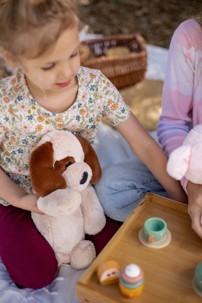 Tento roztomilý strakatý plyšový pejsek je ideálním společníkem pro všechny milovníky zvířat. S velikostí přibližně 41 cm je dostatečně velký na to, aby si ho vaše děti mohly vzít do postele, ale zároveň dost malý, aby byl skvělým kamarádem na cesty. Pejsek je vyroben z jemného, příjemného plyše, který je měkký na dotek a příjemný k mazlení. Jeho barevné zbarvení a detailní zpracování mu dodávají kouzelný vzhled, který potěší každého, kdo si ho vezme do náruče. Perfektní dárek pro malé i velké, kteří ocení nejen krásu, ale i pohodlí, které tento pejsek nabízí.