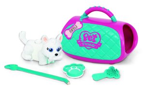 Bambule vám přináší vašeho nového zvířecího kamaráda – pejska Pet Parade. Přitlačte na pejska prstem a tak je jednoduše ovládejte. I bez baterií dokáže uchopit kostičku či noviny. Pomocí vodítka půjde za vámi a při tom bude hýbat nohama, legračně se vlnit a pohybovat hlavou. Hračka určená především pro děvčata. Podívejte se i na ostatní sady Pet Parade a vyberte si tu nejvhodnější pro vás. Balení obsahuje: 1× pejsek, 1× taštička, 1× kostička, 1× vodítko, 1× samolepka na obojek, 1× hřebínek, 1× miska Rozměr balení:15×25×13 Věk 3+"