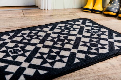 Neotřelý design těchto koberečků ukáže všem návštěvníkům, že se v domácnosti nachází rodinný mazlíček, o kterého se příkladně staráte, a přitom myslíte i na ochranu Vaší podlahy. Vhodný je samozřejmě i pro kočky :)