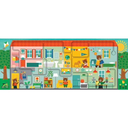 Pohybujte se po cestičce v obrázku a připravte medvídě na večerku! Najdete v tomto krásném domečku všech 20 předmětů? Zábava začíná po složení tohoto 10 dílného puzzle. Děti se prstem pohybují po cestičce a zároveň se snaží najít 20 předmětů rozmístěných po domě. Hlavní vlastnosti: Obsahuje 10 velkých dílků puzzleVyrobeno z recyklovaného papíru, natištěno inkoustem ze zeleninySplňuje všechny bezpečnostní normy