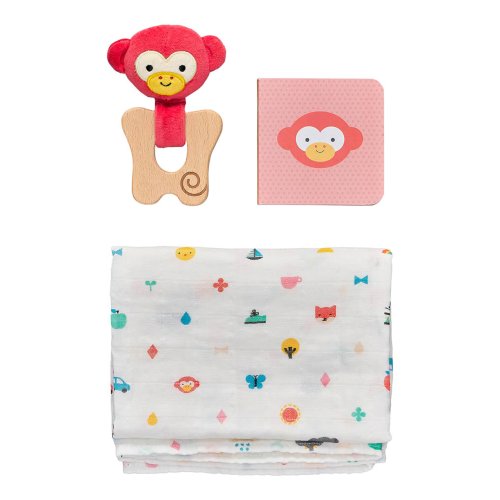 Opičí sada je perfektní pro dítě a zároveň šetrná k životnímu prostředí. Obsahuje vše, co noví rodiče potřebují pro odříhávání, růst zoubků... Sada obsahuje tři dárky a je zabalena bez použití plastů. Hlavní vlastnosti: Kousátko z FSC certifikovaného bukového dřevaMěkký šátek z organické bavlny pro odříháváníLepenková obrázková knížka Značka a certifikát FSC® (Forest Stewardship Council) zaručuje, že dřevo, ze kterého byl produkt vyroben, nebylo vytěženo nelegálně a pochází z lesů obhospodařovaných šetrným či přírodě blízkým způsobem, ve kterém jsou dodržovány přísné environmentální a sociální požadavky. Značka FSC® na výrobku znamená, že svým nákupem pomáháte chránit lesy a podporujete šetrné, odpovědné či přírodě blízké hospodaření, díky kterému jsou naše lesy stabilnější, zdravější, mají přirozenou druhovou skladbu a lépe odolávají negativním následkům klimatických změn.