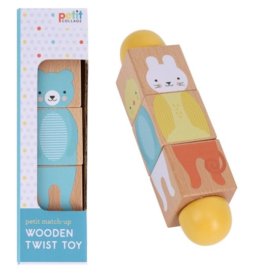 Díky barevným ilustracím čtyř usměvavých zvířecích kamarádů medvěda, opice, kuřátka a zajíčka si děti zamilují tuto snadno použitelnou hračku, která rozvíjí učení pomocí hmatové hry. Rozvíjí jemné motorické dovednosti, koordinaci oko-ruka a obratnost, podporuje rozpoznávání barev a tvarů a zlepšuje dovednosti při řešení problémů. Otočná hračka je vyrobena ze dřeva s certifikací FSC® a obal je vyroben ze 75 % z recyklovaných materiálů, potištěn rostlinnými inkousty. S krásnými ilustracemi v jemných pastelových barvách je Petit Match-Up Wooden Twist Toy perfektním dárkem pro nejmenší. Hlavní vlastnosti: dřevěná otočná hračkaobsahuje 3 kostky z masivního dřevavyrobeno z FSC® certifikovaného dřeva a potištěno netoxickou vodou ředitelnou barvouvhodné od 1+