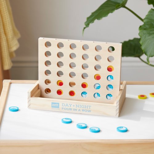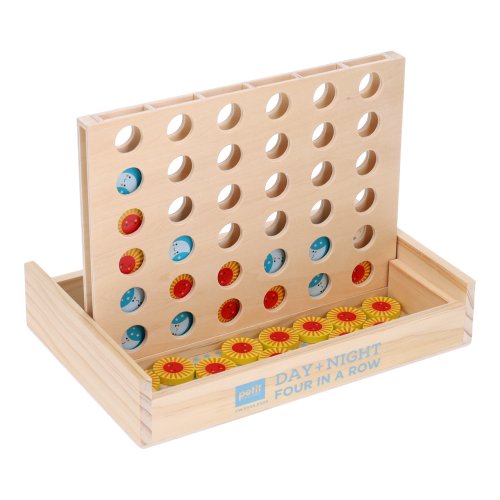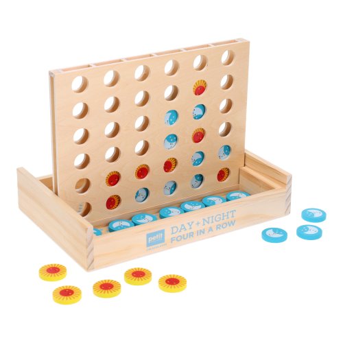 Klasická hra v nebeské verzi, dokážete jako první seřadit měsíce nebo slunce? Žetony s vesmírnými tělesy, které se při hře na děti smějou, cílem hry je seřadit 4 žetony diagonálně, vertikálně nebo horizontálně, jako v piškvorkách. Vyrobeno z FSC dřeva, vhodné od 3 let. Hlavní vlastnosti: klasická hra podobná piškvorkámvhodné domů i na cestyFSC dřevo Zkrácený návod hry:Cílem hry je jako první seřadit 4 žetony vertikálně, horizontálně nebo diagonálně.Nasaďte perforovanou hrací desku svisle do výřezu uprostřed boxu. Hru umístěte mezi 2 hráče. Rozdělte si žetony dle barev. Začíná nejmladší hráč. Hráč na tahu hodí svrchu do hrací desky 1 žeton, během hry se snaží seřadit 4 žetony své barvy. Jakmile se toto jednomu hráči podaří, tento vítězí. Dokumentace:návod ke hře Čtyři v řadě noc a den (CZ)návod ke hře Čtyři v řadě noc a den (SK) Značka a certifikát FSC® (Forest Stewardship Council) zaručuje, že dřevo, ze kterého byl produkt vyroben, nebylo vytěženo nelegálně a pochází z lesů obhospodařovaných šetrným či přírodě blízkým způsobem, ve kterém jsou dodržovány přísné environmentální a sociální požadavky. Značka FSC® na výrobku znamená, že svým nákupem pomáháte chránit lesy a podporujete šetrné, odpovědné či přírodě blízké hospodaření, díky kterému jsou naše lesy stabilnější, zdravější, mají přirozenou druhovou skladbu a lépe odolávají negativním následkům klimatických změn.