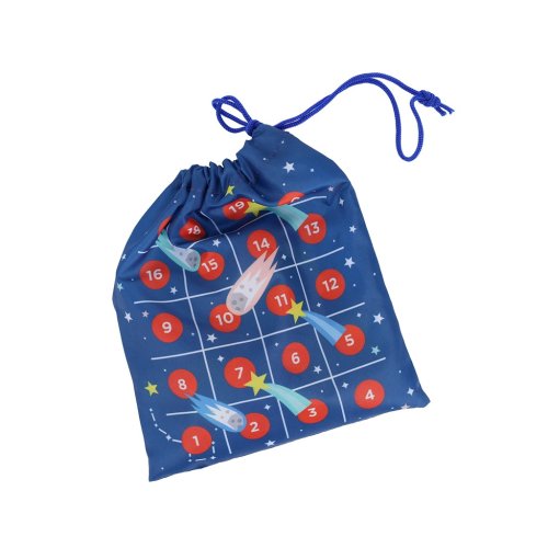 Procestujte galaxii se dvěma oblíbenými hrami! Cestovní hra 2 v 1 Vesmírné dobrodružství je verzí klasických zábavných her piškvorky a hadi a žebříky. Součástí hry je 10 ks dřevěných figurek ve tvaru raket a planet, hrací kostka a návod ke hře. Hráči pohybují planetami a raketami po mřížkách vytištěných na praktickém cestovním pytlíku se stahovací šňůrkou s motivy vesmíru. Když se hráč zastaví na políčku s obrázkem komety, postoupí o řadu výše a políčko s padajícím meteoritem jej zase vrátí o řadu níže. Hry jsou skvělým způsobem, jak naučit děti trpělivosti, soustředění, komunikaci s ostatními hráči, jak vyhrávat, ale také prohrávat. Pro mladší děti je pohybování figurkami po herním plánu výborným cvičením koordinace ruka-oko, zručnosti a rozpoznávání barev a tvarů.Veškeré součásti hry jsou vyrobeny z recyklovaných materiálů. Plátěný pytlík je z recyklovaného PET, šňůrka z recyklovaného PP a dřevěné figurky z recyklovaného dřeva. Hlavní vlastnosti: 2 hry v praktickém cestovním baleníverze oblíbených her piškvorky a hadi a žebříkyučí trpělivosti, soustředění, výhře a prohřerozvíjí koordinaci ruka-okopodporuje rozpoznávání barev a tvarůpro 2 hráčevhodné pro děti od 4 let