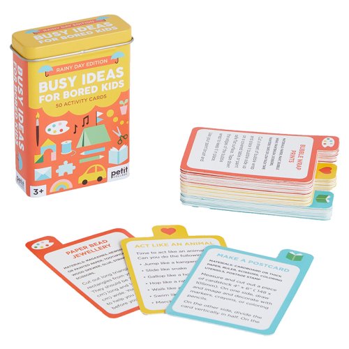 Když Vám docházejí nápady jak zabavit děti, stačí sáhnout po kartách aktivit. Karty a aktivity na nich jsou rozděleny do několika kategorií, které pokrývají širokou škálu okolností a nálad. Tato sada je určena pro zahánění nudy v domácích podmínkách, zvlášť se nabízí také sada pro použití na čerstvém vzduchu. Baleno v atraktivní a praktické plechové krabičce.Karty jsou v angličtině. Hlavní vlastnosti: 50 karet v AJ3 kategorie aktivitpro hry ve vnitřních prostoráchpraktické balení