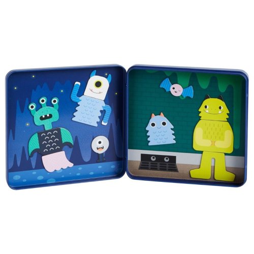Video je pouze ilustrační, zobrazuje příbuzný produkt. Poškozený obal. Promáčknutá kovová krabička, která slouží jako magnetická tabulka. Stavějte a kombinujte roztomilé ilustrované příšery do různých scén. K dispozici je řada magnetických částí těl, které se scénami ve vnitřních prostorách odolné kovové krabičky tvoří praktickou sadu na cesty. Hra nabízí až 100 možných kombinací nabízejících velký prostor vlastní fantazii. Hlavní vlastnosti: 27 dílků, 2 pozadí praktické balení