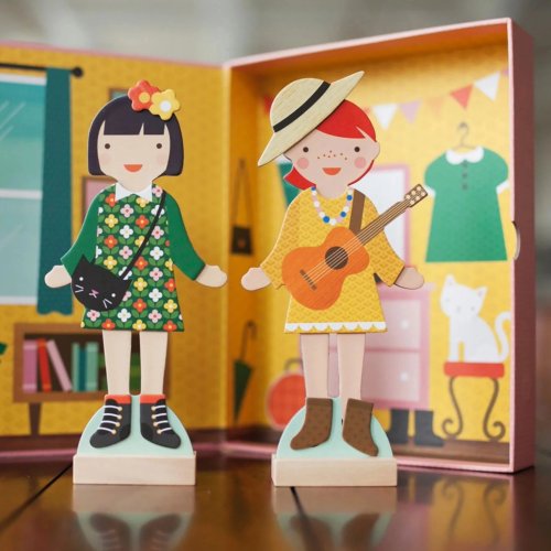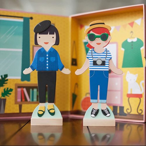 Sada oblékacích dívek v krabičce uzavíratelné magnetem s 27 ks magnetických částí - dopřejte Vašemu dítěti vytvořit až 80 různých kreativních kombinací moderních outfitů. Hlavní vlastnosti: 2 velké dívky 2 dřevěné stojánky27 magnetických částí