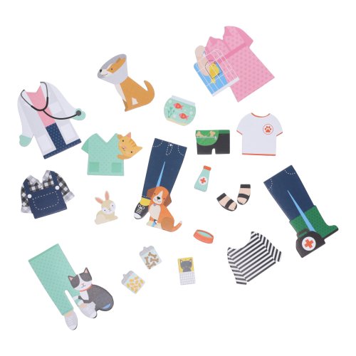 Magnetická sada navržená k tomu, aby inspirovala dívky. Inspirujte milovnici zvířátek, aby se stala zvěrolékařkou. K dispozici je řada magnetických částí oděvu a profesní výbavy, které se scénami ve vnitřních prostorách odolné kovové krabičky tvoří praktickou sadu na cesty. Hra nabízí množství kombinací nabízejících velký prostor vlastní fantazii. Hlavní vlastnosti: 29 dílků, 2 pozadípraktické balení