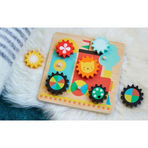 Klasické puzzle s ozubenými kolečky. Prozkoumejte možné kombinace a uspořádejte robustní a poutavě vyvedená kolečka správně. Dítě při hře rozvíjí logiku, jemnou motoriku, koordinaci a rozpoznávání barev. Hlavní vlastnosti: základna a 7 koleček
