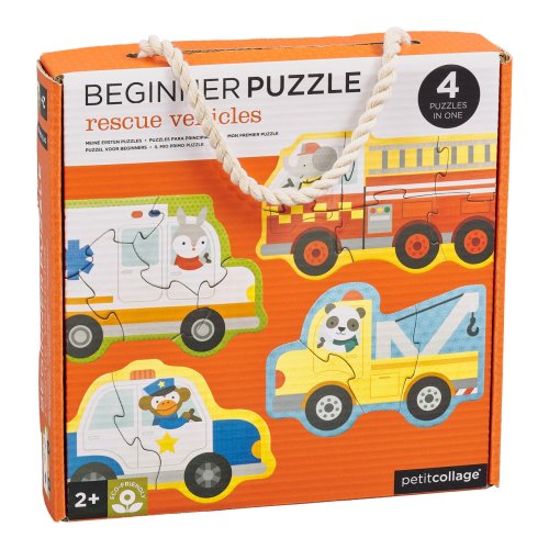 Puzzle, kde králík řídí sanitku, opice policejní auto, slon hasičský vůz a panda odtahovku? To jsou skládačky o 3, 4, 5 a 6 kusech. Sada puzzle obsahuje 4 motivy záchranných vozidel. Vyrobeno z recyklované lepenky a potištěné rostlinnými barvami. Hlavní vlastnosti: 4 motivy záchranných vozidelVyrobeno z recyklované lepené a potištěno rostlinnými inkoustyÚložný box pro snadné uschování