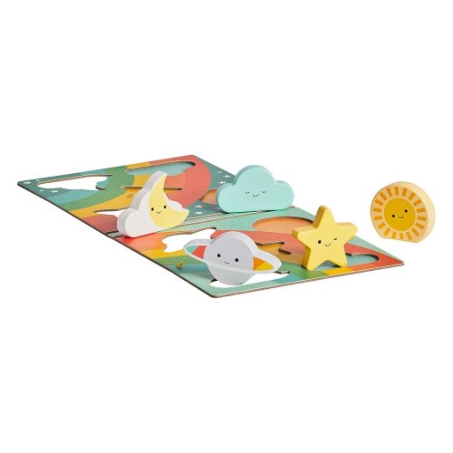 Rozměry: 21x21x1,8 cm Věk: 18m+ Materiál: recyklovaný papír, dřevo