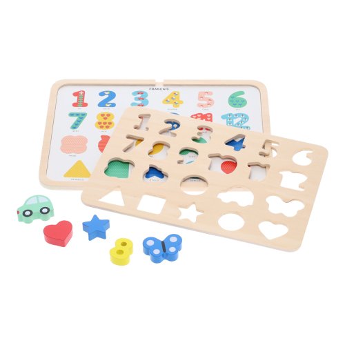 Nechejte děti rozpoznávat barvy, tvary i čísla a přitom je učte cizím jazykům. Vkládačka pomáhá rozvíjet i koordinaci rukou a zraku či jemnou motoriku. Její součástí jsou 3 oboustranné karty, které se pokládají na základnu a obsahují slovíčka v angličtině, španělštině, francouzštině, němčině, holandštině a italštině. Je vyrobena z udržitelně získaných materiálů a k tisku byly použity nezávadné rostlinné inkousty. Hlavní vlastnosti:základna, 22 dílků a 3 karty se slovíčky6 různých jazykůvyrobeno ze 100% FSC® dřeva Značka a certifikát FSC® (Forest Stewardship Council) zaručuje, že dřevo, ze kterého byl produkt vyroben, nebylo vytěženo nelegálně a pochází z lesů obhospodařovaných šetrným či přírodě blízkým způsobem, ve kterém jsou dodržovány přísné environmentální a sociální požadavky. Značka FSC® na výrobku znamená, že svým nákupem pomáháte chránit lesy a podporujete šetrné, odpovědné či přírodě blízké hospodaření, díky kterému jsou naše lesy stabilnější, zdravější, mají přirozenou druhovou skladbu a lépe odolávají negativním následkům klimatických změn.