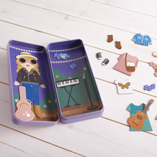 Poškozená kovová krabička. Kreativní. Smělá. Vynalézavá. Použijte magnetické dílky k vytvoření vlastní muzikantky a koncertního pódia. Každý může mít velké sny, které jsou s dostatkem píle splnitelné. Hlavní vlastnosti: Inspiruje mladé umělce, aby si šli za svou vášníObsahuje obrázek mladé muzikantky s magnetickými doplňkyObsahuje dvě koncertní scény