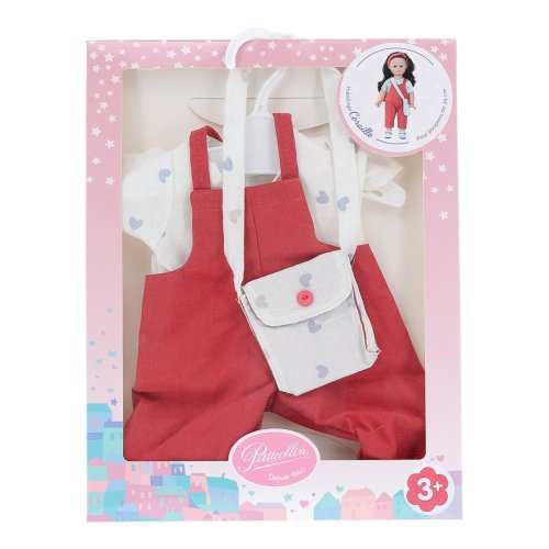Obleček určený zejména pro panenky Petitcollin řady Émilie. Skládá se z bílého trička s potiskem, červených kalhot s laclem a bílé taštičky přes rameno. Oblečky Petitcollin jsou pečlivě zpracované, vynikají francouzskou elegancí, jedinečnou barevností a vzory, díky kterým jsou poutavé a nezaměnitelné. Dodáváno v papírové krabičce s průhledem a plastovým ramínkem. Hlavní vlastnosti:pro panenky o výšce 39 cmtričko, kalhoty s laclem a taštičkavyrobeno v Tunisku