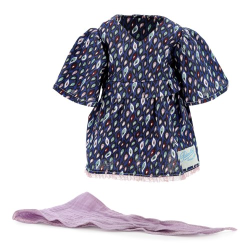 Obleček určený zejména pro panenky Petitcollin řady Émilie. Skládá se ze vzorovaných tmavomodrých šatiček a fialového šátku. Oblečky Petitcollin jsou pečlivě zpracované, vynikají francouzskou elegancí, jedinečnou barevností a vzory, díky kterým jsou poutavé a nezaměnitelné. Dodáváno v papírové krabičce s průhledem a plastovým ramínkem. Hlavní vlastnosti:pro panenky o výšce 39 cmšatičky a šátekvyrobeno v Tunisku