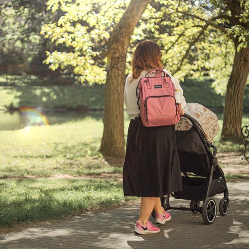 Tento pohodlný a organizačně promyšlený batoh je vyroben z kvalitních materiálů odolných vůči vlhkosti. Má boční popruhy pro připevnění ke kočárku a hlavní přihrádka se zapíná na dvoucestný zip. Velké množství kapes včetně funkčních kapes a snadný přístup k obsahu díky bočnímu otevírání vám výrazně usnadní balení na výlet nebo procházku.
