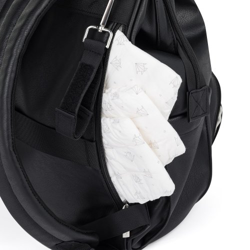 Batoh váží méně než kilogram a je vyroben z kvalitního voděodolného PU materiálu pro stabilitu a dlouhou životnost. Boční odnímatelné popruhy umožňují batoh snadno připevnit na kočárek jakékoli značky. Ramenní popruhy s extra vrstvou pěny zaručují pohodlí i při dlouhodobém nošení a vnitřní podšívka ve světlé barvě usnadňuje rychlé nalezení věcí, které potřebujete, a udržování pořádku.