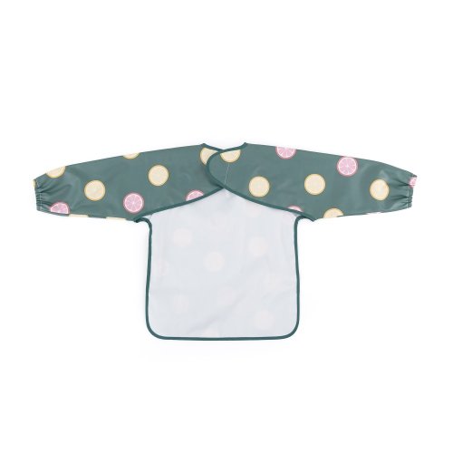 Pohodlný, nepromokavý bryndák s dlouhým rukávem je vyroben z rychleschnoucího, bezpečného PU materiálu, zcela bez PVC a ftalátů. Přední kapsa na drobky zajistí pořádek a pohodlí při krmení a dlouhé rukávy s gumičkou chrání oblečení před zašpiněním a namočením. Bryndák je velmi jemný na dotek a zapíná se na měkký suchý zip. Lze jej používat nejen při jídle, ale také při výtvarných pracích. Chcete-li jej udržet v čistotě, po použití jej jednoduše otřete vlhkým hadříkem.