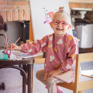 Pohodlný, nepromokavý bryndák s dlouhým rukávem je vyroben z rychleschnoucího, bezpečného PU materiálu, zcela bez PVC a ftalátů. Přední kapsa na drobky zajistí pořádek a pohodlí při krmení a dlouhé rukávy s gumičkou chrání oblečení před zašpiněním a namočením. Bryndák je velmi jemný na dotek a zapíná se na měkký suchý zip. Lze jej používat nejen při jídle, ale také při výtvarných pracích. Chcete-li jej udržet v čistotě, po použití jej jednoduše otřete vlhkým hadříkem.