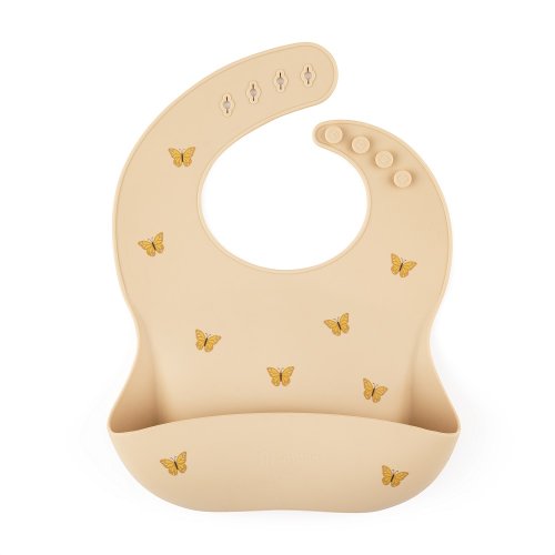Bryndák je vyroben z potravinářského silikonu bez obsahu BPA. Je určen pro malé děti od 6 měsíců, kterým se zavádějí první příkrmy, a pro ty, které se již úspěšně učí samostatně jíst. Má nastavitelné zapínání, které umožňuje přizpůsobit jej velikosti krku dítěte. To znamená, že bryndák roste spolu s děťátkem. Díky ergonomickému tvaru a měkkému materiálu se bryndák pohodlně nosí a neomezuje pohyb dítěte při jídle. Dá se také srolovat, a proto nezabírá moc místa v tašce, když jedete na procházku nebo na výlet.