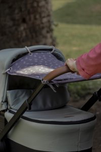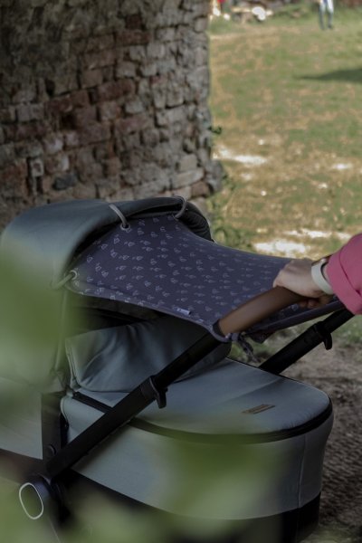 Sluneční clona na kočárky značky Petite&Mars je praktickým doplňkem ke kočárku nebo autosedačce.