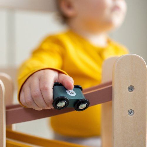Každý kousek kolekce je pečlivě navržen tak, aby byl nejen estetický, ale aby rozvíjel také kognitivní schopnosti dětí. Jedná se o jedinečnou kombinaci vzdělávání a krásy, která dětem umožňuje tvořivě zkoumat vesmírná tajemství a rozvíjet neobyčejné schopnosti. Dřevěná závodní dráha pro autíčka MILKY WAY je víceúrovňovým dobrodružstvím pro malé fanoušky závodu. Souprava se skládá ze 3 úrovní a 3 malých autíček, které lze spustit shora dolů, což poskytuje atraktivní zábavu. Autíčka lze použít i na samostatné závody a minimalistický design dráhy v jemných, tlumených barvách se dokonale hodí do dětského pokoje.