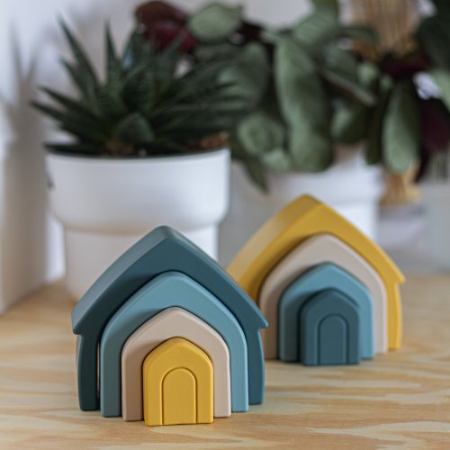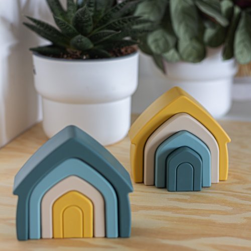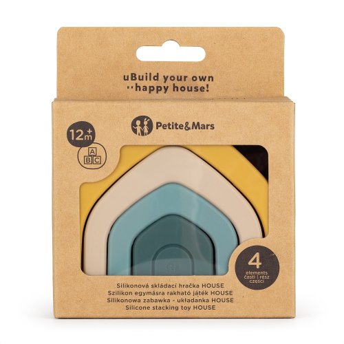 Silikonová skládací hračka HOUSE Postavte si svůj vlastní šťastný domeček! Silikonová skládací hračka HOUSE se skládá ze čtyř obloukových prvků, které po umístění jeden na druhý vytvoří pěkný domeček. Tento domeček je kouzelnou branou do světa tvarů, barev a poznávání. Skládání oblouků, jejich otáčení nebo ukládání jednoho oblouku na druhý je výborným cvičením pro malé ručičky. Dítě si procvičuje přesnost pohybů a koordinaci. Skládačka vzbuzuje zájem dítěte, příjemným a poutavým způsobem soustřeďuje jeho pozornost a učí jej tvořivému myšlení. Uspořádání neukládá konkrétní pravidla, čímž se podporuje kreativita. Dítě se přitom skvěle baví, může vytvářet vlastní verze skládačky, rozvíjet si konstrukční dovednosti a procvičovat svoji prostorovou představivost.