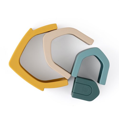 Měkké silikonové prvky jsou vyrobeny výhradně z potravinářského silikonu bez obsahu BPA. Nejkvalitnější, odolné materiály, pozornost věnovaná detailům a pečlivě vybrané velikosti oblouků umožňují dítěti bezpečnou hru a stimulují jeho rozvoj.