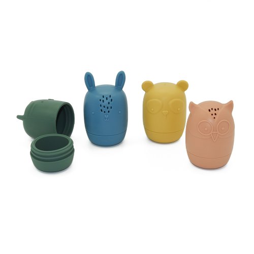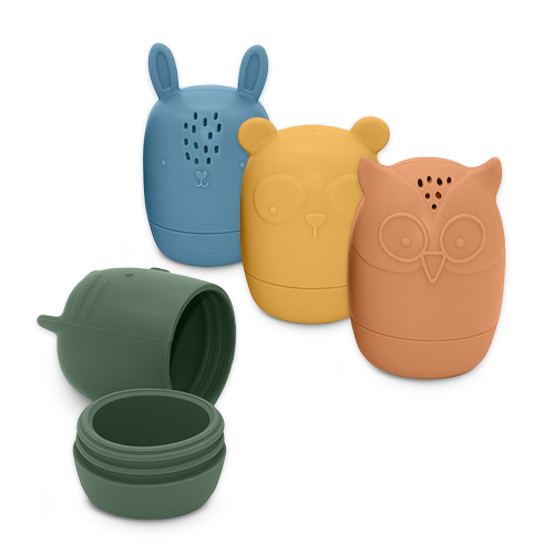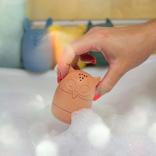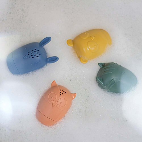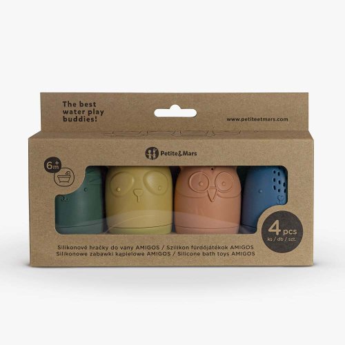 Nejlepší kamarádi na hru ve vodě! Sada hraček AMIGOS obsahuje 4 figurky zvířátek: sovu, zajíce, kočku a pandu. Stanou se nerozlučnými kamarády Vašeho prcka. Ať už budete doma ve vaně, v bazénu nebo u moře či jezera na dovolené. Jsou malé, skladné, můžete si je vzít s sebou kamkoli. Ponořením pod vodu se do nich přes otvory dostane voda a pravá zábava může začít. Kromě zábavy při koupání, poskytne i účinné cvičení na mačkání pro malé ručky. Hračky vzbudí zájem vašeho děťátka, soustředí jeho pozornost a učí jej tvůrčímu myšlení. Lze je rozložit na dvě části (vrchní a spodní), díky čemuž se snadno omyjí a vysuší. Měkké silikonové hračky jsou vyrobeny výhradně z potravinářského silikonu bez obsahu BPA. Nejkvalitnější odolné materiály, pozornost věnovaná detailům a přiměřená velikost zvířátek umožňují vašemu dítěti lehké uchopení a vynikající, bezpečnou hru, která stimuluje jeho vývoj.