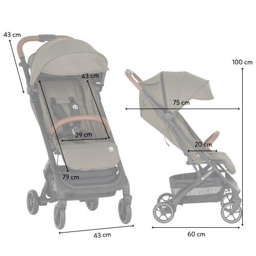 Do prostorného nákupního košíku uložíte drobný nákup nebo si sbalíte vše potřebné k výletu. Do kapsy na drobnosti ze zadní strany zádové opěrky si můžete uložit mobil či klíče. Kočárek se dobře a snadno přenáší díky úchytu zabudovanému pod suchým zipem, v části kde se nachází opěrka na nožičky. Po složení stojí sám. V kufru nezabere moc místa, protože je velmi skladný.