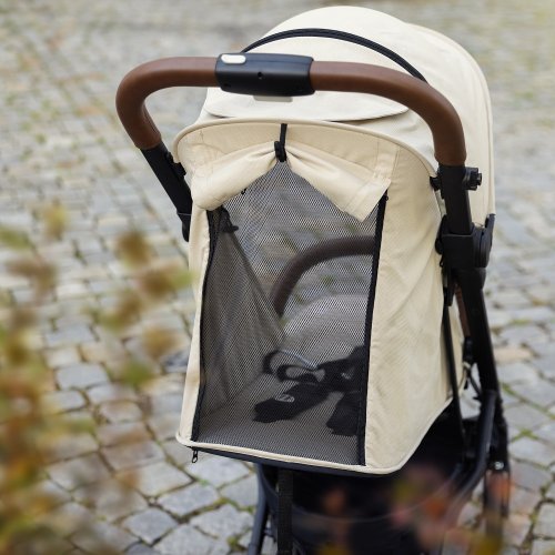 Do prostorného nákupního košíku uložíte drobný nákup nebo si sbalíte vše potřebné k výletu. Do kapsy na drobnosti ze zadní strany zádové opěrky si můžete uložit mobil či klíče. Kočárek se dobře a snadno přenáší díky úchytu zabudovanému pod suchým zipem, v části kde se nachází opěrka na nožičky. Po složení stojí sám. V kufru nezabere moc místa, protože je velmi skladný.