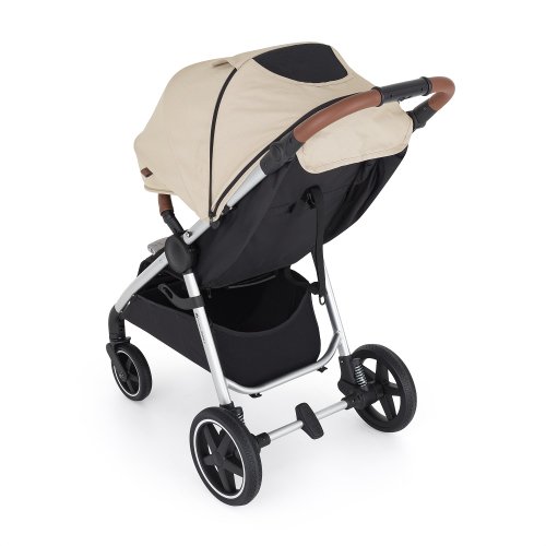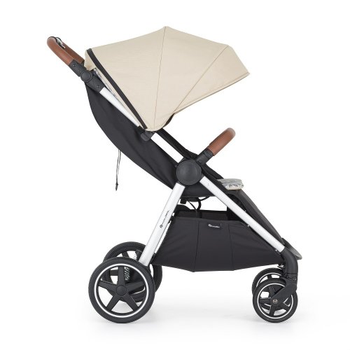 • Konstrukci kočárku ve stříbrné barvě s madlem a rukojetí v hnědé eko-kůži