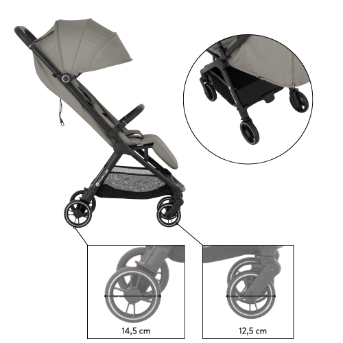 Navržen pro cestování ZIP patří mezi kočárky s kabinovými rozměry po složení, takže jej můžete bez obav vzít na palubu letadla nebo uložit do kufru i menšího auta. S hmotností pouhých 7 kg jej snadno přenesete v jedné ruce, zatímco druhou povedete dítě.