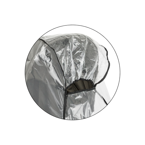 Ideální pláštěnka na chladné a deštivé dny, protože poskytuje dítěti vynikající ochranu před deštěm, větrem nebo sněhem. Vyrobeno z odolné, měkké fólie o tloušťce 0,07 mikrometru, která se dokonale přizpůsobí tvaru kočárku. Snadno se instaluje a díky otvorům umožňuje neustálý kontakt s dítětem.