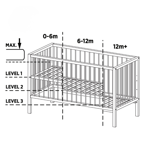 Přírodní jednoduchost a bezpečné místo pro spánek Postýlka Nela je vyrobena z kvalitního bukového dřeva, které je známé svou pevností, odolností a dlouhou životností. Moderní design s rovnými liniemi působí jednoduše a elegantně, díky čemuž přirozeně zapadne do každého dětského pokoje. Rozměr 60 × 120 cm je ideální pro miminka i menší děti a poskytuje dostatek prostoru pro pohodlný a bezpečný spánek. Stabilní konstrukce zajišťuje pevnost a spolehlivost při každodenním používání. Postýlka disponuje nastavitelným roštem ve 3 výškových polohách, díky čemuž ji snadno přizpůsobíte věku a potřebám dítěte. Vyšší poloha usnadňuje manipulaci s novorozencem, nižší polohy zvyšují bezpečnost v období, kdy dítě začíná sedět nebo se staví na nohy.