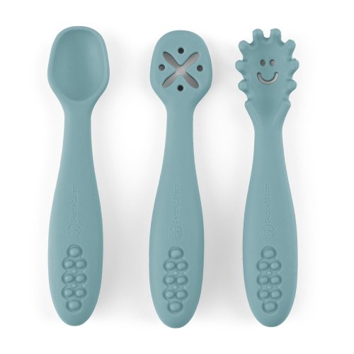 Série TAKE&MATCH TAKE what you need and MATCH as you like. Vyberte si výrobky, které vaše dítě potřebuje, a slaďte je barevně podle svých představ. Jídelní sety jsou k dispozici v barvách inspirovaných nejnovějšími trendy a sestaveny tak, aby každá barva dokonale ladila s ostatními. Můžete tedy libovolně kombinovat všechny druhy výrobků pro bezpečné papání vašeho děťátka a vytvořit si tak vlastní jedinečnou kolekci. Díky naší sérii se krmení vašeho dítěte stane nejen velmi jednoduchým, ale také estetickým a příjemným. TAKE&MATCH silikonové tréninkové lžičky sada 3 ks Tréninkový set sestávající ze tří lžiček umožňuje vašemu děťátku objevit radost z jídla. Každá lžička je pečlivě navržena tak, aby se papání stalo zážitkem. Set obsahuje polévkovou lžičku, lžičku s výstupky pro snadné uchopení těstovin a lžičku pro namáčení, která je ideální na jogurty nebo pěny. Některé lžičky v setu mají jemné otvory, které umožňují kontrolované podávání jídla. Díky tomu se děťátko může naučit jíst samostatně, zkoumat různé tvary a textury, což stimuluje jeho smysly a rozvíjí smyslové schopnosti. Rodič si může být jist, že jeho děťátko nepolyká příliš velká sousta najednou. Tento set je nejen pomůckou, ale také zdrojem radosti, která vašemu děťátku zpříjemní každodenní stravování. Set je vyroben z potravinářského silikonu bez obsahu BPA. Díky tomu může vaše dítě s příborem jíst teplé, studené a různé konzistence jídel. Díky pružnému silikonu jsou lžičky ideální pro citlivé dásně malého dítěte. Lžičky jsou vhodné pro děti od 6 měsíců, které se seznamují s prvními příkrmy, a pro ty, které se již úspěšně učí jíst samy. Zaoblené tvary a malé rozměry usnadňují děťátku jejich uchopení a papání. Lžičky lze sladit s jiným výrobkem z řady TAKE&MATCH ve stejné nebo ladící barvě.